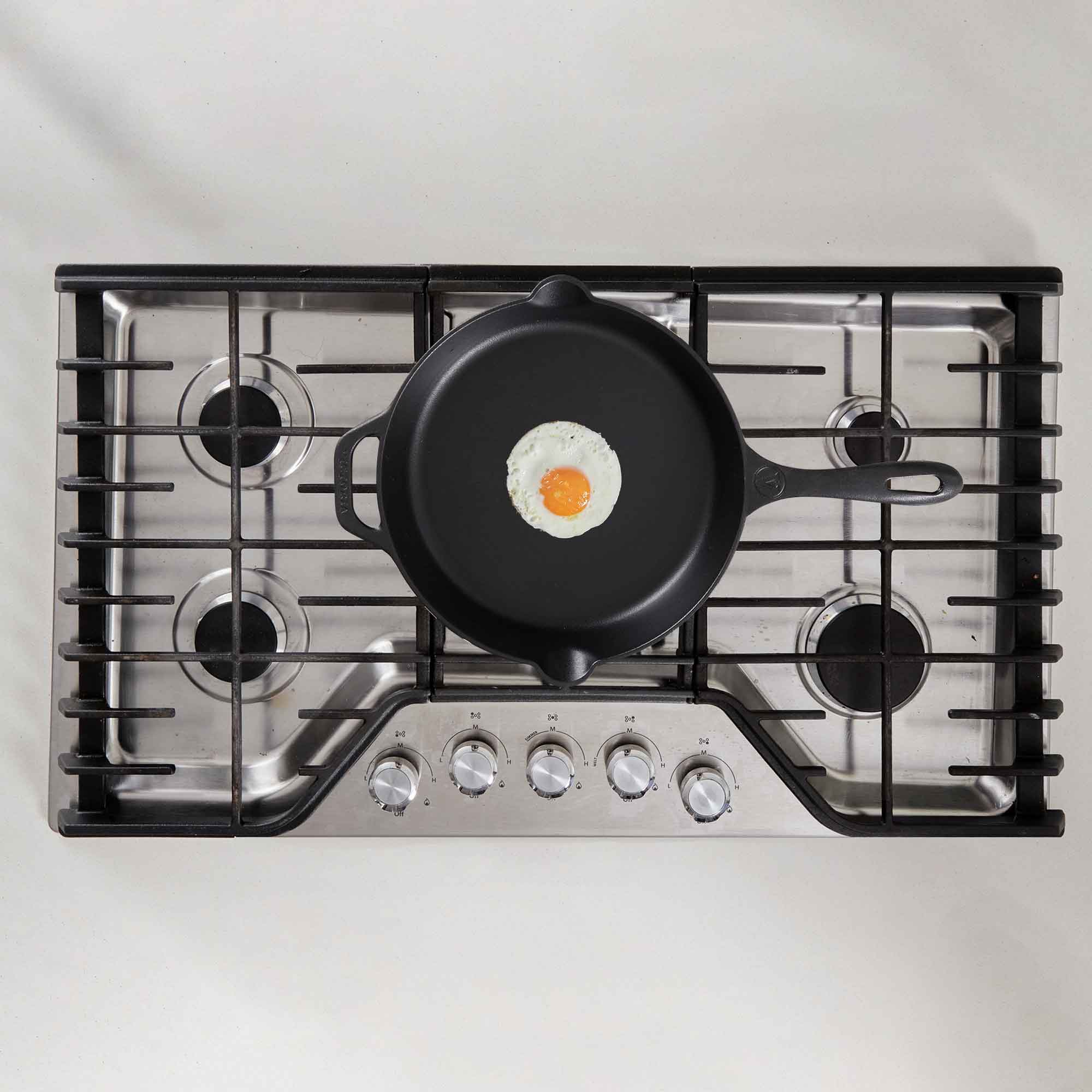 Our seasoned cast iron is seasoned at high temperatures and ready to cook. Here’s what we suggest: