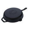 Designed for performance and comfort, this skillet features an extra-thick edge with invisible curvature to reduce warping, a deeper vessel for hearty recipes, and dual pour spouts for cleaner serving. The long curved handle ensures a safe, balanced grip from stove to table.