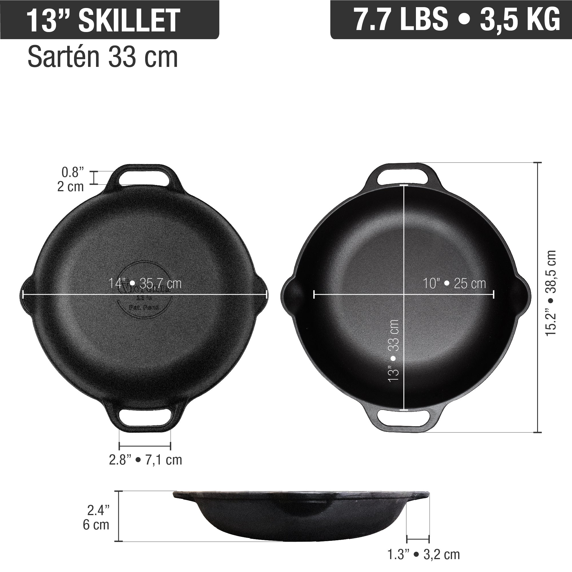 Upgrade your kitchen with the Victoria 13-Inch Everyday Cast Iron Skillet, thoughtfully designed for large meals, family-style servings, and superior cooking results. Built in Colombia using traditional gray cast iron and seasoned with 100% non-GMO flaxseed oil, this pan offers unmatched heat retention and durability. Its deeper vessel and extra-thick edge help cook larger portions without spills, while dual loop handles ensure safe and stable transfers from stovetop to table. Whether you're searing, roasting, baking, or frying, this heavy-duty skillet delivers exceptional performance on any heat source grill, oven, or campfire.