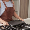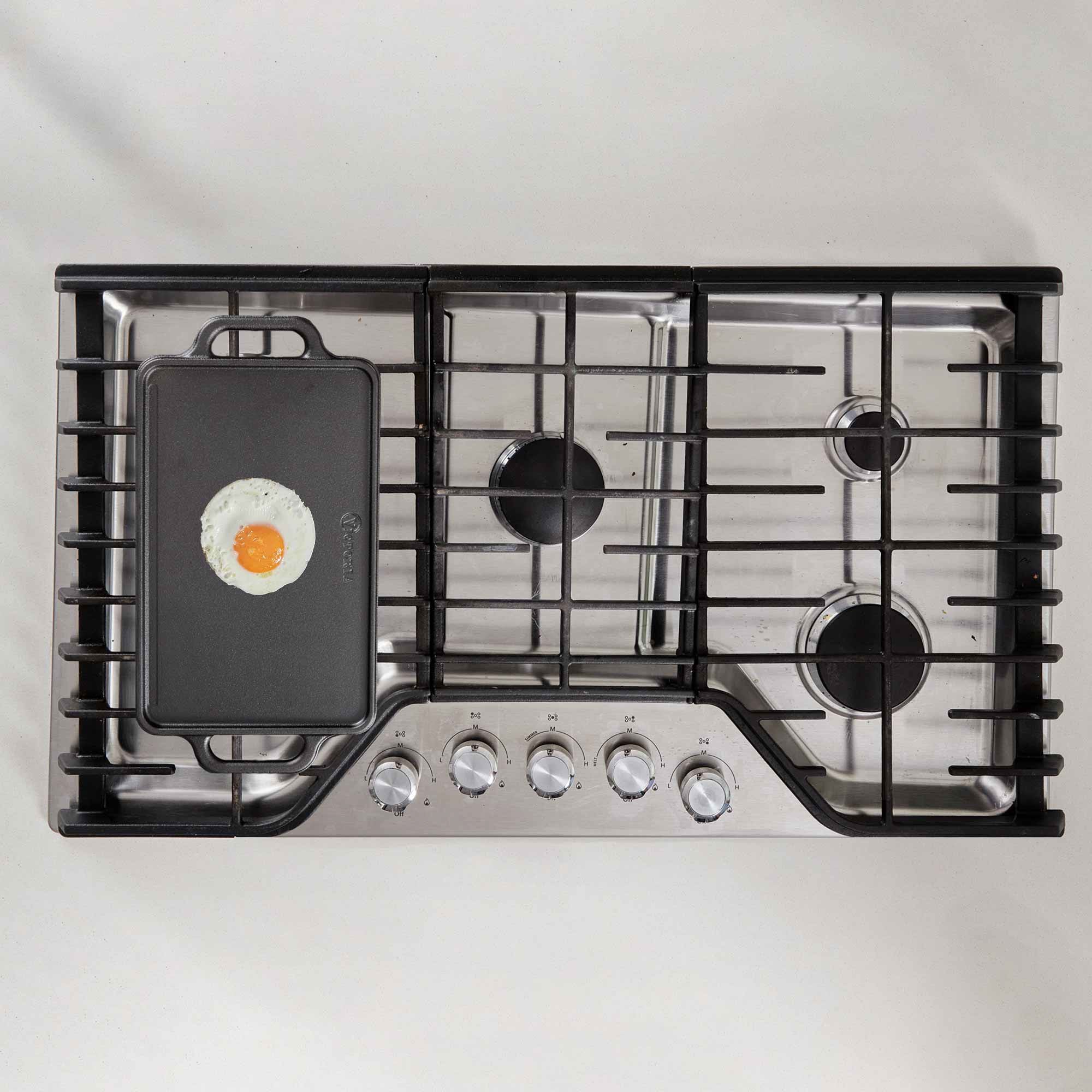 The Victoria 13" x 8.5" Rectangular Cast Iron Reversible Griddle brings the power of traditional cast iron to your kitchen, grill, or campfire — in a compact, double burner-friendly format. Featuring a smooth side for pancakes, eggs, and stir-fries, and a grill side with ridges for burgers, steaks, and fajitas, this griddle is made for indoor and outdoor versatility.